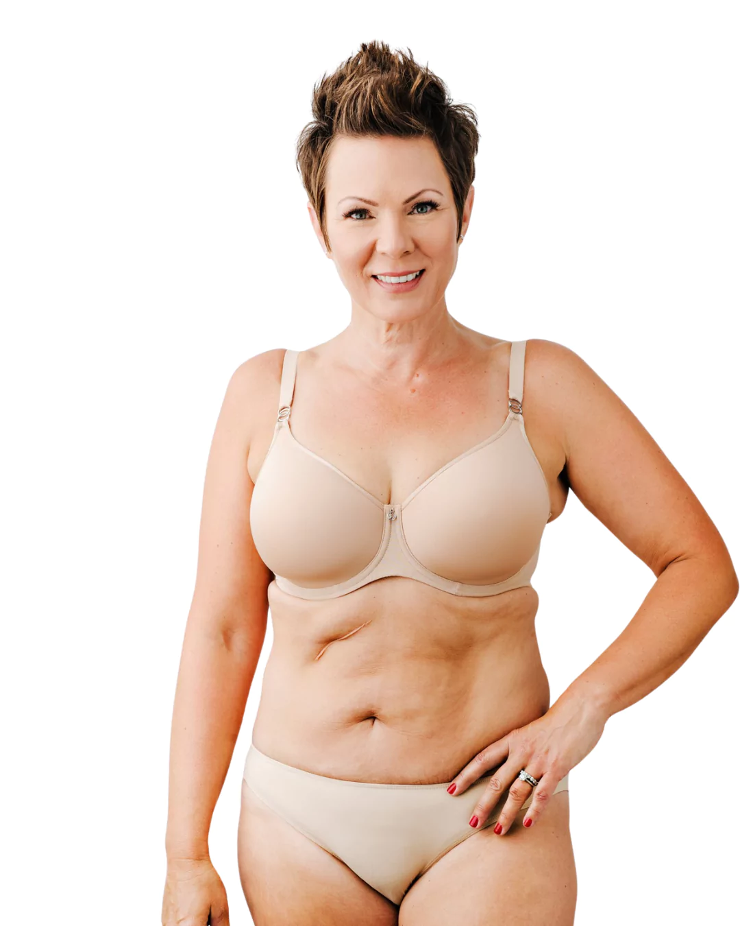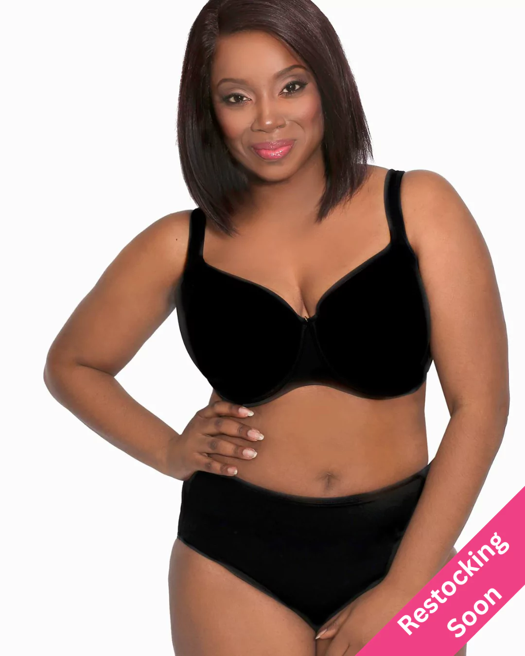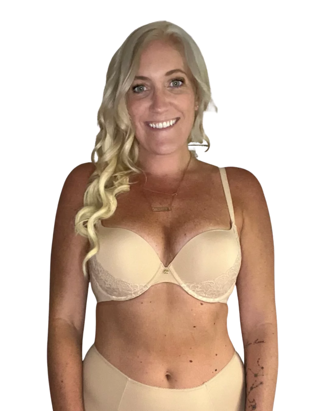 Our 1 selling bra! A full-coverage T-shirt bra with seamless contoured cups and foam lining for lift, support, and a slimmer look. Flexible stays and power mesh sides keep everything in place, while wide straps reduce bounce. Perfect for everyday wear under anything.