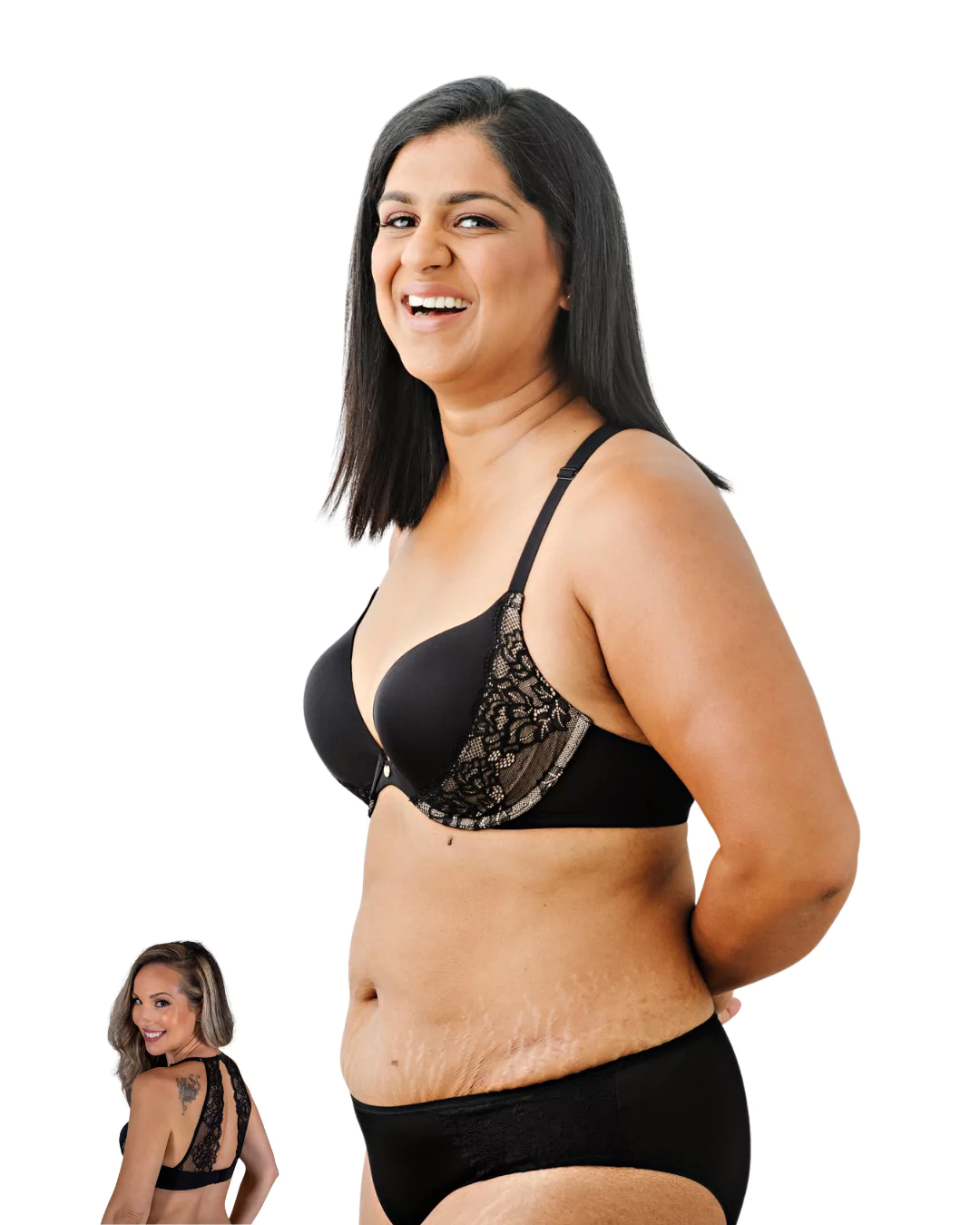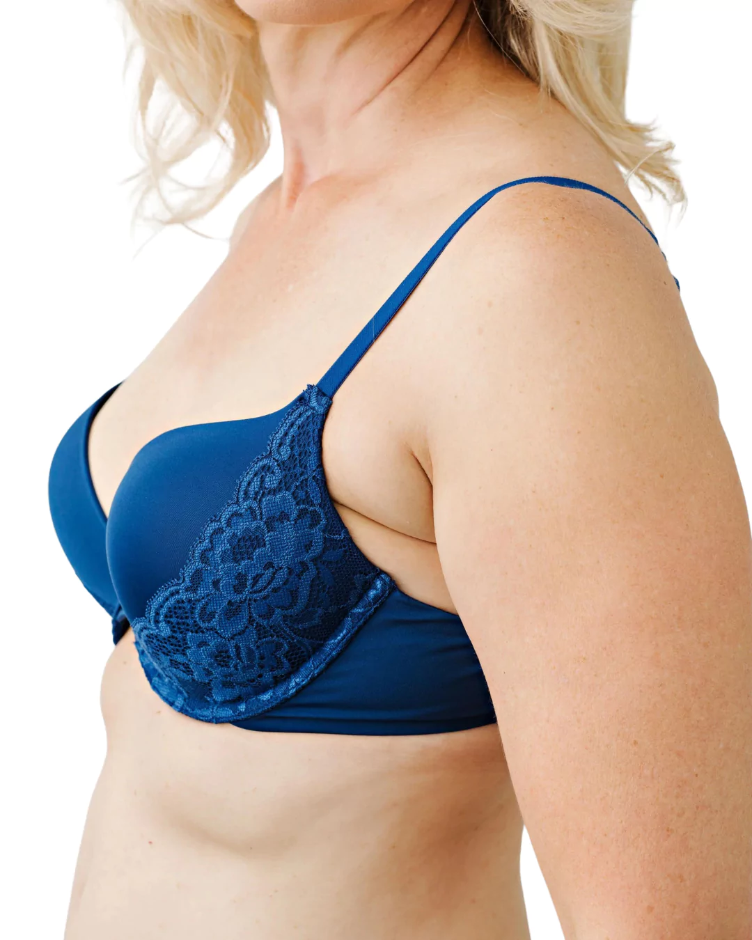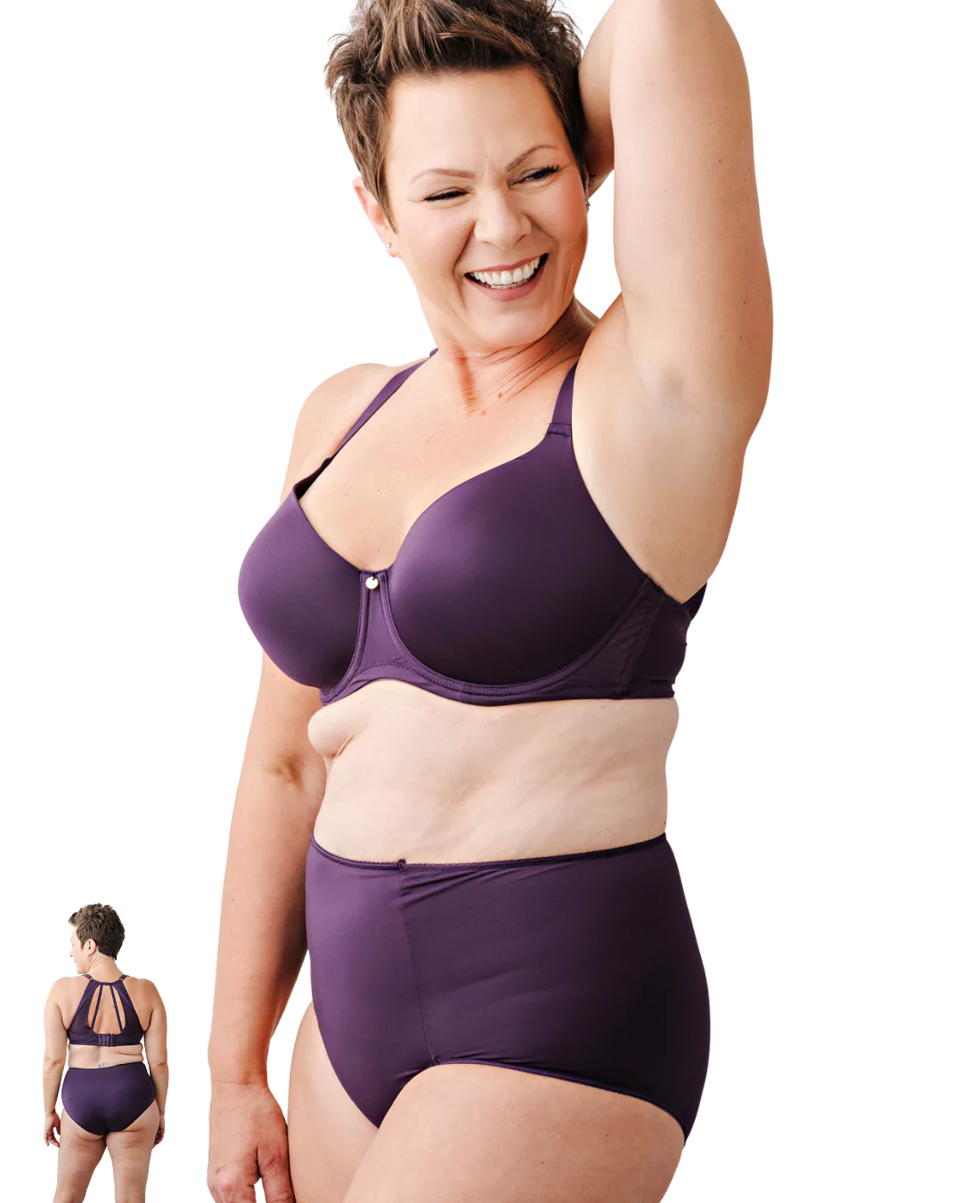 Our 1 selling bra! A full-coverage T-shirt bra with seamless contoured cups and foam lining for lift, support, and a slimmer look. Flexible stays and power mesh sides keep everything in place, while wide straps reduce bounce. Perfect for everyday wear under anything.